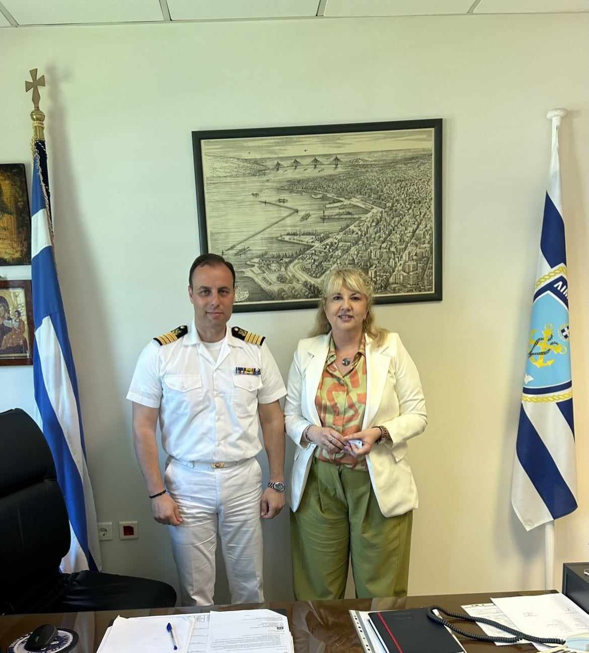 Επίσκεψη-ενημέρωση από τον κεντρικό λιμενάρχη Πατρών πλοίαρχο ΛΣ Λάζαρο Χανουμίδη είχε η πρόεδρος του Ιατρικού Συλλόγου Πατρών και υποψήφια στις προσεχείς Περιφερειακές εκλογές με τον συνδυασμό του Περιφερειάρχη Δυτικής Ελλάδας Νεκτάριου Φαρμάκη, Αννα Μαστοράκου.
