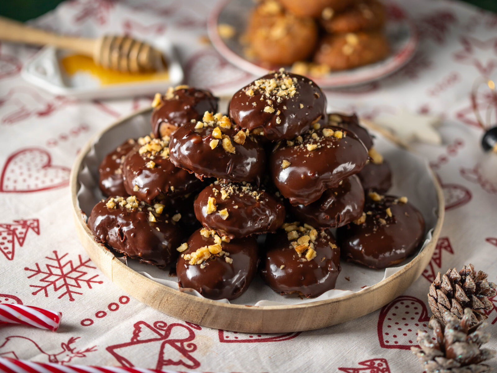 Πασπαλίζουμε με τα ψιλοκομμένα καρύδια πριν η σοκολάτα κρυώσει εντελώς.