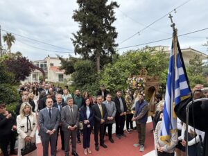 Στην έδρα της Δημοτικής Κοινότητας Μετοχίου που τιμά ως Προστάτη της τον Άγιο Γεώργιο, ο κ. Αλεξόπουλος μαζί με την πρόεδρο της Κοινότητας, Βασιλική Αλαντζά, τους αντιδημάρχους Κώστα Ταπεινό και Γιάννη Θανασούλια συμμετείχαν με κατάνυξη στη θεία λειτουργία και στη λιτάνευση της Εικόνας. Παρών στις θρησκευτικές εκδηλώσεις στο Λάππα ήταν και ο βουλευτής Αχαΐας, Ανδρέας Κατσανιώτης και δημοτικοί σύμβουλοι.
