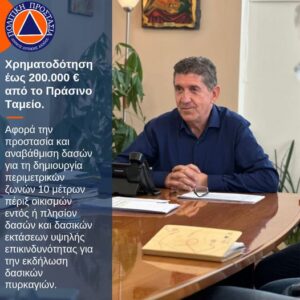 Εγκρίθηκε χρηματοδότηση έως 200.000 ευρώ για τη δημιουργία ζωνών πυροπροστασίας στο Δήμο Δυτικής Αχαΐας από το Πράσινο Ταμείο, στο πλαίσιο σχετικής πρόσκλησης, που έχει ως στόχο την ενίσχυση πυροπροστασίας κατοικημένων περιοχών σε ΟΤΑ Α’ βαθμού με περιαστικά δάση.