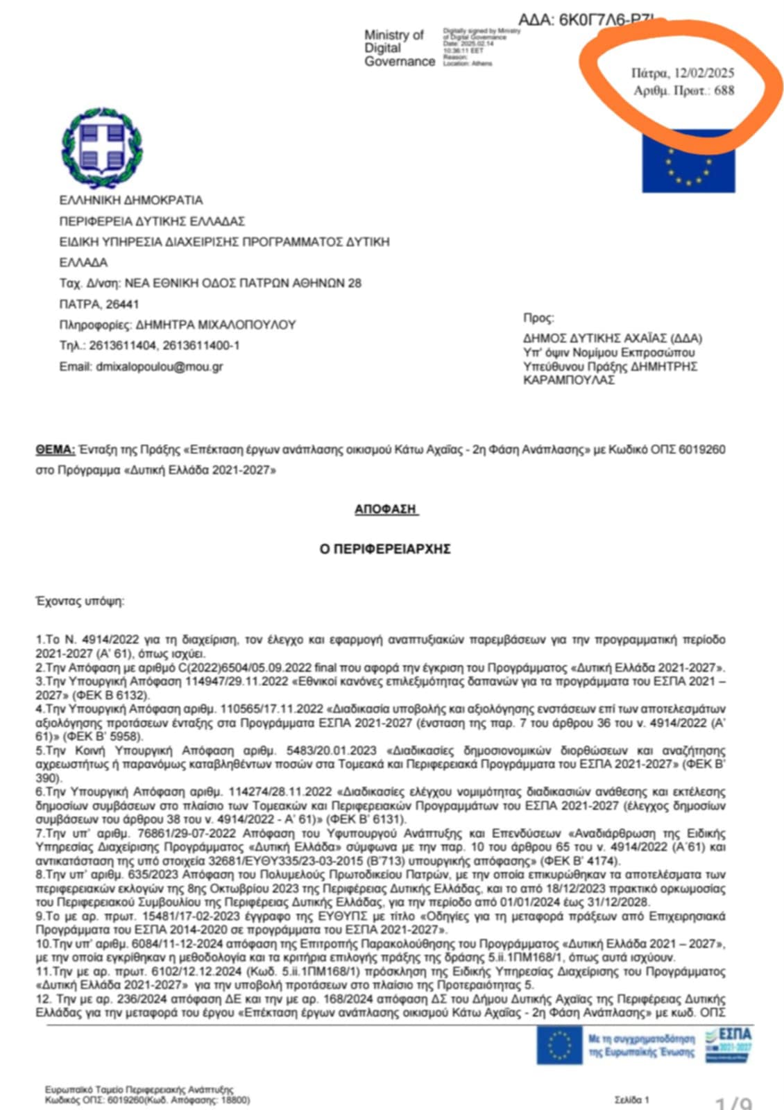 Η νέα απόφαση ένταξης του έρου στο ΕΣΠΑ